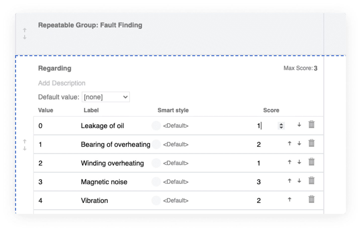 Add different weight to your questions by assigning a score. Question scoring will help you discover irregularities faster and you will get a quicker overview of issues that matter to you.